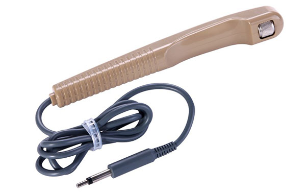 连接治疗仪的局部端口,同时治疗仪电位插口插治疗垫,选择电位档,治疗人坐于治疗垫上,脚踩绝缘脚踏,用疏通器梳理经络。